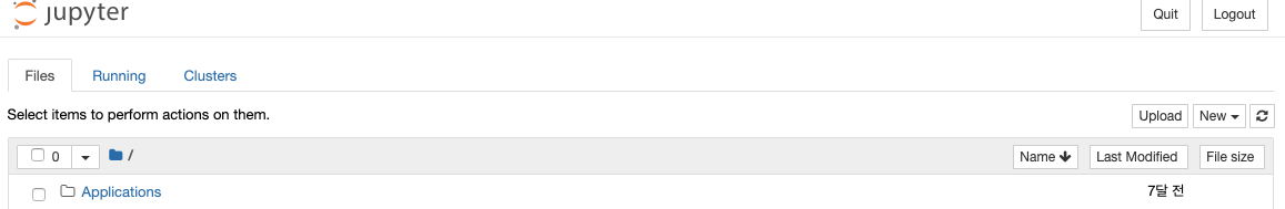 터미널에서 jupyter notebook 명령어를 실행하면 웹브라우저에서 jupyer가 실행된다.