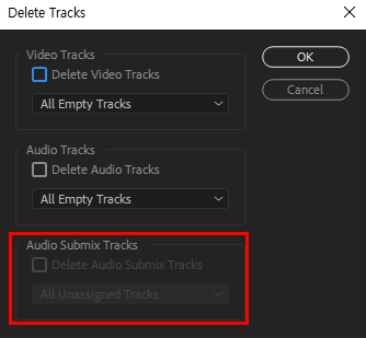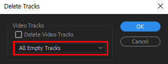 [ Delete Video Tracks ] 에 체크 표시하면 비디오 트랙을 삭제할 수 있다.
