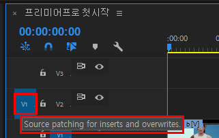 소스패칭(Source Patching) 옵션은 소스(Source)패널에 영상이 있는 경우멘 활성화된다.