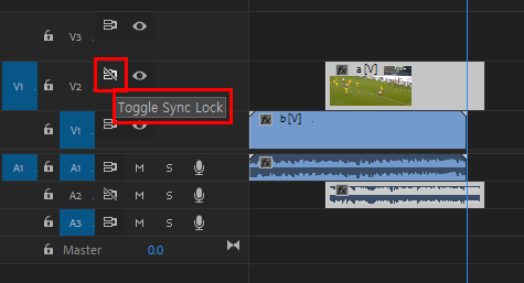 하지만 [Toggle Sync Lock] 옵션을 비활성화해 동기화 설정을 잠그면 해당 트랙은 트랙간의 동기화 움직임에 영향을 받지 않는다.