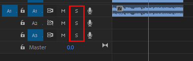 오디오 트랙 헤더의 Solo Track 은 해당 트랙의 오디오만 재생한다.
